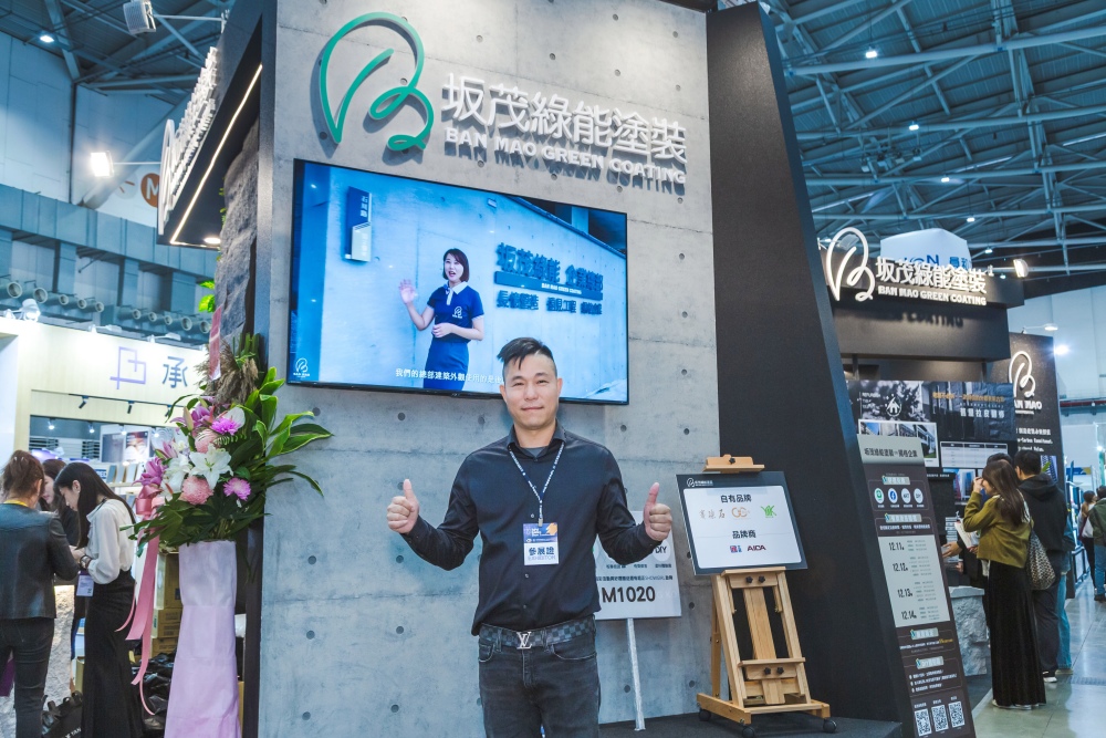坂茂綠能的技術核心在於讓塗料性能真正作用於建築表層,透過精準的底材評估、耐候系統搭配與專業化施工流程,使外牆同時具備美觀、耐久、機能三大價值。在這屆「台北國際建築建材暨產品展」,坂茂綠能展示多項塗裝革新技術與工程實績,包括:一、賽礫石仿石塗料與高耐候塗裝系統。二、舊屋外牆拉皮與更新工程案例。三、建築外牆的高性能塗層技術。四、極限抗颱結構:環保石材專利認證工法。