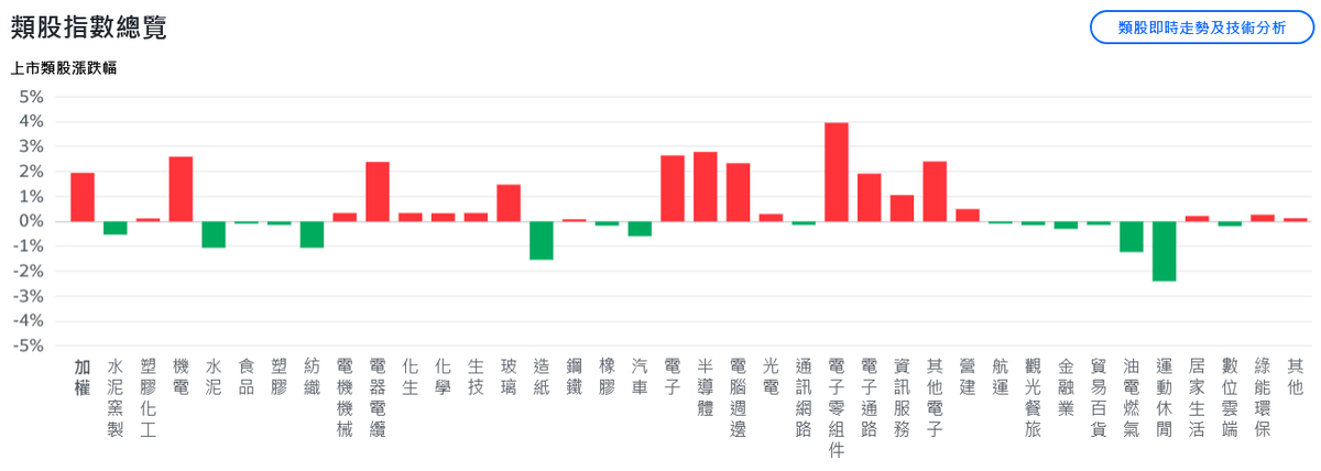 記憶體族群走勢剽悍,華邦電、旺宏、南亞科、群聯、威剛強勢亮燈,力積電、力成、晶豪科強攻逾5%;被動元件受惠漲價題材,華新科漲停表態,國巨*股價創高,凱美、日電貿、信昌電買氣旺。PCB同樣火熱,指標股定穎投控大、欣興、南電、瀚宇博、台燿、金像電、景碩、穩居紅盤。