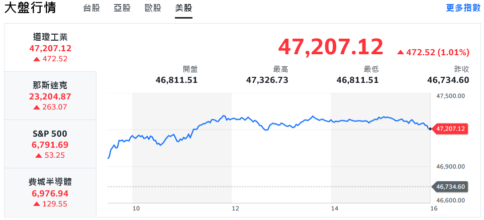 標普500指數上週五創歷史收盤新高,今年以來上漲逾15%,自4月低點反彈多達36%。美股三大指數(道瓊、標普、那斯達克)皆刷新紀錄,道瓊更首度突破47,000點;不過,分析師提醒,美股連漲多月未出現明顯回檔,短線波動可能加劇。