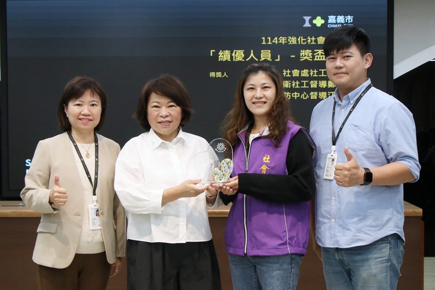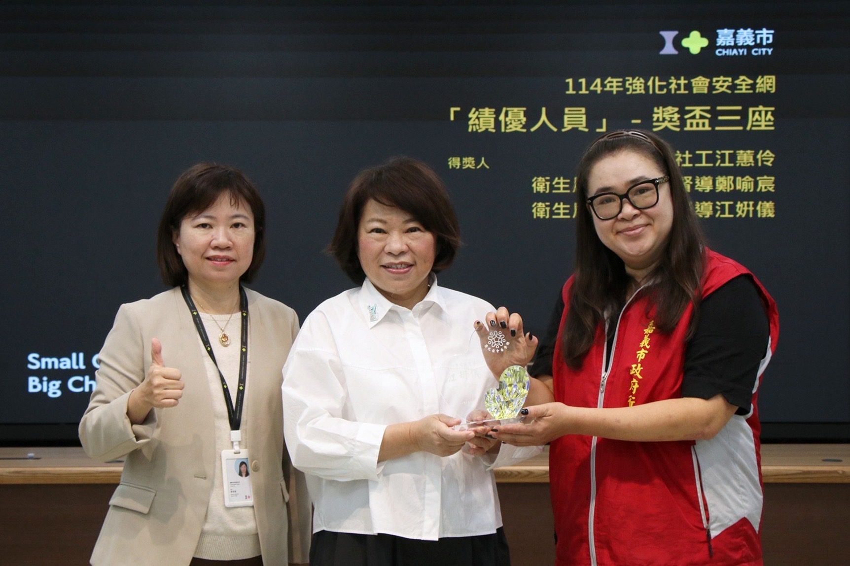 衛生福利部於今年7月26日舉辦「114年強化社會安全網績優人員表揚」,肯定第一線專業團隊在高風險家庭與弱勢個案服務上的努力。本次嘉義市共有三位專業工作者獲獎,包括社會處社工江蕙伶、衛生局心理衛生中心督導鄭喻宸,以及衛生局毒品危害防制中心督導江姸儀。他們長期深耕社區、承擔高壓個案服務,為嘉義市打造堅實的保護網,其專業能量受到中央一致肯定。