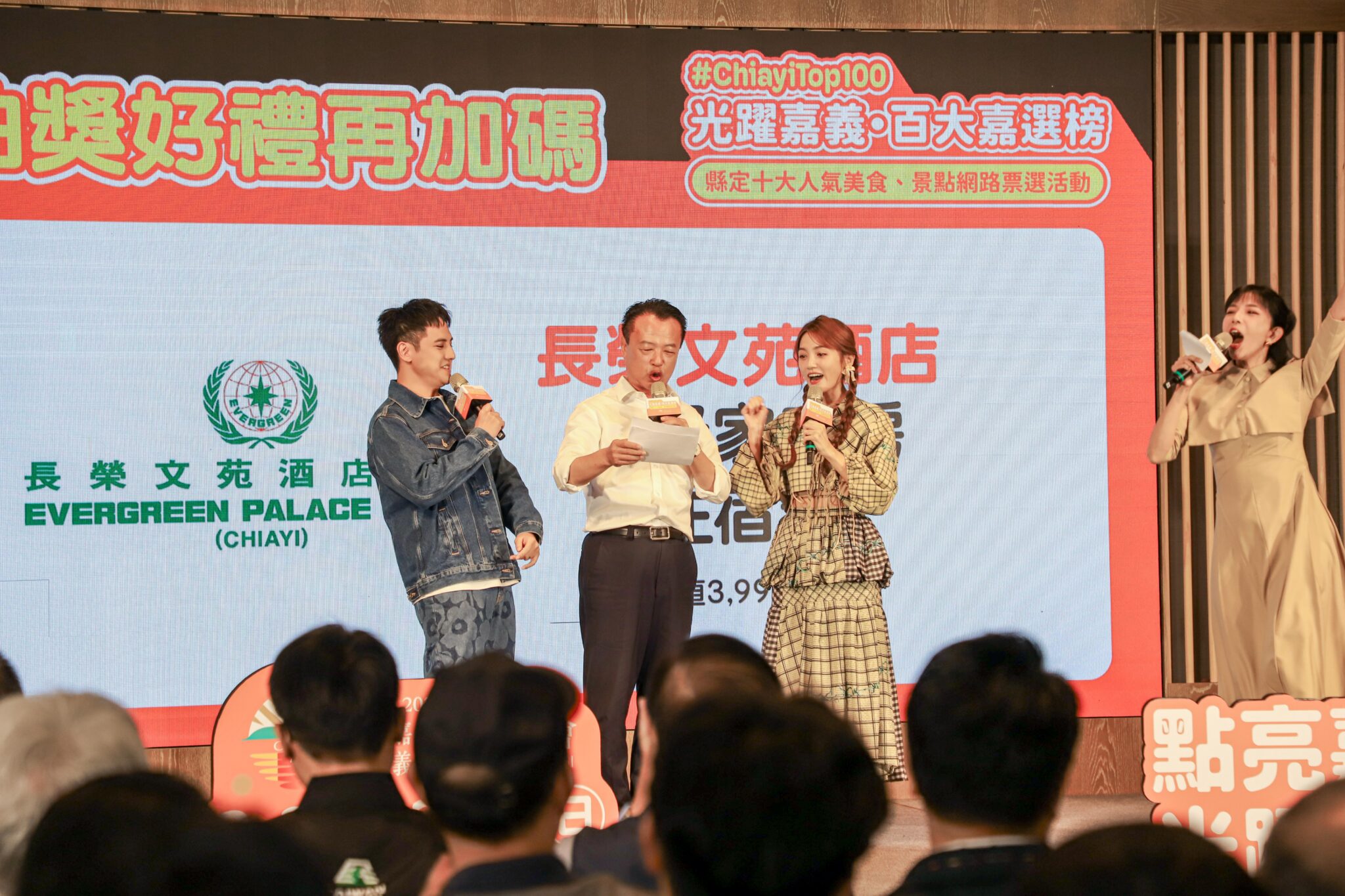 嘉義縣政府舉辦「光躍嘉義‧百大嘉選榜」票選活動,邀請民眾選出最代表嘉義縣的美食及景點。今24日記者會邀請全縣18鄉鎮店家齊聚記者會展示自家招牌美食,食尚玩家主持人朵拉(Dora)及曾子余也到現場與縣長翁章梁分享嘉義縣的私房景點。