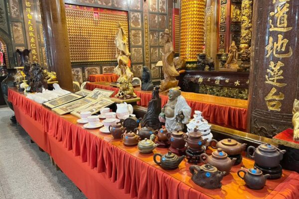 圖:「藝品結緣擲筊大會」廟方準備100件藝品,包括茶具、佛像、古董畫等。(圖/土城永福岩清水祖師廟提供)