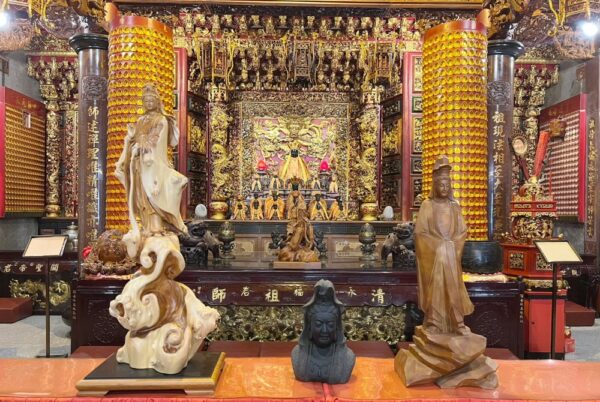 圖:「百萬現金擲筊」決賽第2、3、4名獲得名家木雕、石雕佛像,總價值超過100萬元。(圖/土城永福岩清水祖師廟提供)