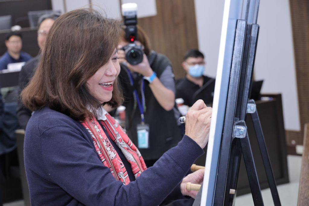 墨新聞|記者潘明賜/台北報導 記者潘明賜/宜蘭報導 《Re: Milieu / 書寫遷徙:風景之書》華梵大學佛教藝術學系助理教授吳軒慧博士個展,今(15)日在宜蘭市立圖書館城東藝廊展場,隆重舉行開幕茶會,有300多位僧俗到場共襄盛舉,包括:法鼓山退居方丈果東和尚、華梵大學校長李天任、宜蘭市長陳美玲(秘書陳明憲代理)、宜蘭市立圖書館長李玉惠等貴賓,齊聚一堂,場面相當熱鬧。 法鼓山退居方丈果東和尚(左)致贈吳軒慧博士(右)聖嚴老和尚墨寶。(記者潘明賜攝) 新任中華佛教書畫藝術學會理事長吳軒慧,為兩岸知名書法篆刻大師、華梵大學佛藝系暨圓光佛學院助理教授吳大仁的愛女。吳軒慧是華梵大學美術系畢業、台北藝術大學美術系水墨組碩士,留學法國8年,擁有法國第一大學藝術學博士及美學與造型藝術雙碩士學位。 這次吳軒慧個展展出22幅水墨作品,包括:書法6件、繪畫16件,皆為嘔心瀝血經典佳作。其中3組雙聯幅水墨畫《想像之鄉:返鄉視角下的遷徙書寫I,II,III》為主視覺作品。成為眾人矚目的焦點,紛紛駐足觀賞,讚嘆頗有無可言喻的意境。 吳軒慧博士(右)致贈宜蘭市公所秘書何明憲(左)親書長幅《心經》。(記者潘明賜攝) 在開幕茶會上,宜蘭市公所秘書何明憲引言、法鼓山退居方丈果東和尚以佛教「出離心」為切入點,指出吳軒慧的創作具有回返本真面目的精神氣質。華梵大學校長李天任則從色彩學角度談及其作品的細膩、淡雅與內涵豐富,並在「有相」與「無相」之間建構層次分明的視覺張力。隨後,教務長簡江儒與佛藝系主任陳俊吉教授相繼致詞,肯定吳軒慧於當代書畫領域的突出成就,並盛讚她留學法國、融通中西的深厚底蘊。其作品技法虛實兼備,並展現中華文化的精神脈絡,被視為藝術界備受期待的明日之星。 吳軒慧致詞指出,「Re:」代表著一種回應的姿態,既是對過去的回信,也是對當下世界的重新思考與期盼。法文「Milieu」比字義上的「環境」更具深遠。早期她的作品以變形山水和自然為主題,探討人文心境和禪意美學。留法的經驗讓她穿梭於多重地理與文化脈絡、氣候變遷與地緣張力,到生態倫理的研究,也逐漸意識到「風景」是一種由感知生成與世界互構的景觀。 果東和尚、吳軒慧博士、吳大仁大師與貴賓合影。(記者潘明賜攝) 吳軒慧說:「返台後,我將原本關於環境與身體的對話延伸到城市景觀。都市擴張與氣候劇變的現實,使我在創作中重新審視風土作為情感與記憶交織的場域,那看似靜止的山水,實則在流動中書寫遷徒與不確定的詩意。」 吳軒慧特別強調,其中3組雙聯幅畫為主軸。創作靈感來自於2024年參與蘭陽媽祖海巡與陸巡遼境經驗·這段身體性的行動,延續了在法國的研究:「行走」與「書寫」的脈络,筆跡在紙上流動,線條以不同節奏穿越紙面,如同身體在地景中的行進。 吳大仁大師(右三)、吳軒慧博士與圓光禪寺敦親睦鄰書法班學生合影。(記者潘明賜攝) 針對3組雙聯幅畫的意涵與蘊含的繪畫張力,吳軒慧解析說:「整體架構以「出海、繞島、回港」為引導,聚焦於時間、空間與身體感知的滲透,筆勢的懸置與呼吸、筆痕在重疊與節奏之間交織。吳軒慧期望觀者在觀看的同時,能感受到線條在紙上流動、交織的書寫過程,因為這些都是環境、記憶、時間共生的節奏,也是風景自身生成的軌跡。」 吳軒慧的書畫可謂家學淵源,受其父吳大仁大師薰陶甚深。吳大仁的書畫與篆刻集國內3大名家(三岳書法篆刻大師)之大成,即王宗岳、王北岳與翁文煒(字鎮岳)等3人。虎父無犬女,吳軒慧盡得乃父真傳,精通傳統書法、當代書畫與篆刻,作品均為經典之作。 吳軒慧博士書畫個展海報。(記者潘明賜攝) 今日參加開幕茶會的僧俗,除了法鼓山退居方丈果東和尚、華梵大學校長李天任、吳大仁大師伉儷之外,尚有華梵大學教務長簡江儒、佛藝系主任陳俊吉、宜蘭區公所秘書何明憲、彰化縣政府衛生局秘書林慧姿、溪湖鎮公所秘書楊定欽、聖心診所所長黄寶凱、茶道教授吳秀真、吳千惠老師、攝影家陳英俊、準提精舍負責人吳登諺、江芷霖、精舍住持心慧法師、照果法師、宜蘭市民代表林飛身、宜蘭美術協會榮譽理事長鄒森均、藝術家游樹林、賴棟材,以及吳大仁大師的圓光禪寺敦親睦鄰書法班4位學生、華梵大學10位學生…等人。 此篇文章最開始出處為: 華梵大學助理教授吳軒慧當代書畫個展 宜蘭市圖開幕茶會僧俗雲集