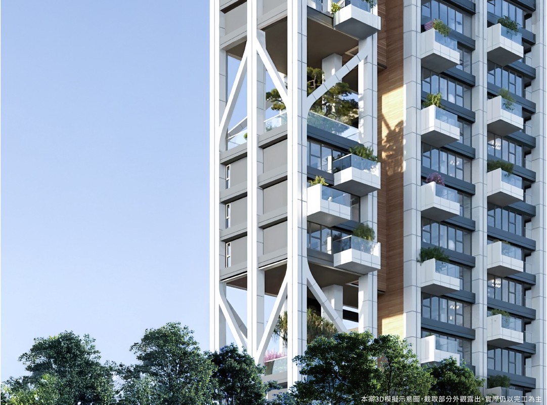 整體規劃140%的高綠覆率,以6座挑空3層樓高的複層式露台組成立體花園系統,主題景觀軸線無可挑剔;整體三戶兩梯、兩戶兩梯的豪宅梯戶比呈現高品質生活。室內則搭配義大利精品B&B Italia廚具,在儀式感上給足給滿,也將住宅從「居住功能」提升至資產收藏層級。
