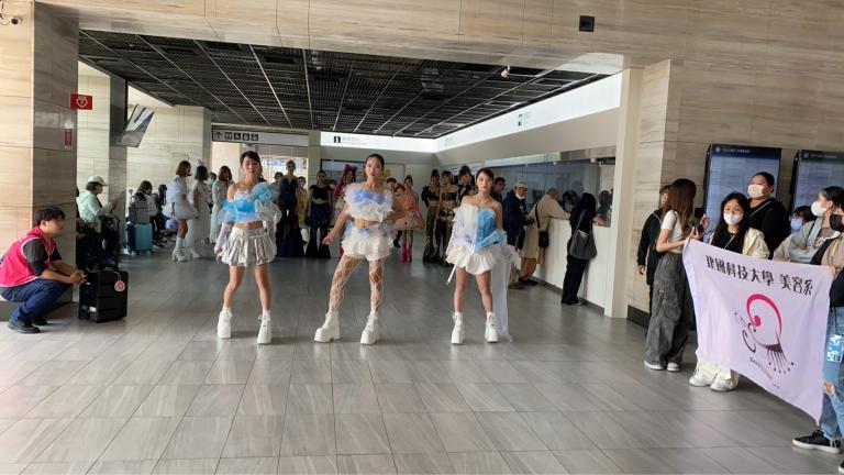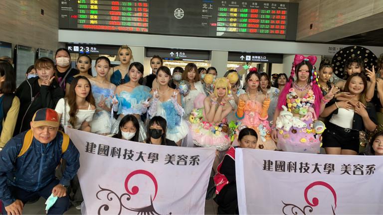 建國科大美容系7日在台中火車站與彰化火車站舉辦創意快閃活動,由日間部五組學生以整體造型作品搶先曝光畢業成果展《無盡視界》,以行動藝術的方式走入人群,展現新世代的創意能量與時尚美感。彰化火車站吸引眾多搭車旅客駐足拍照,氣氛熱烈,為12月5日的成果展揭開序幕。