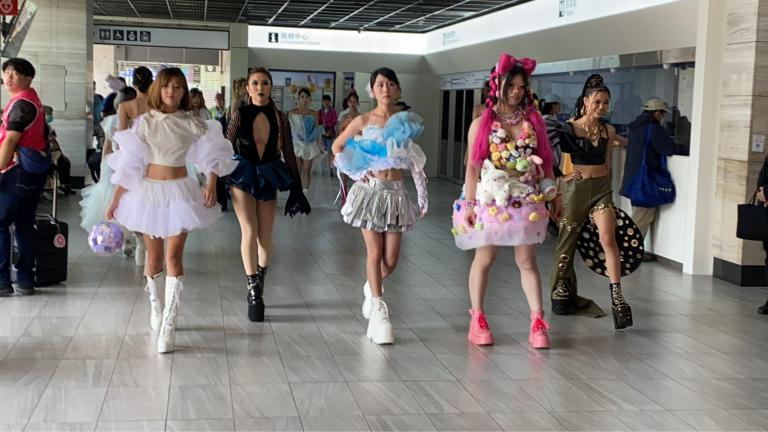 ▲快閃活動由日間部五組學生以整體造型作品搶先曝光畢業成果展《無盡視界》,以行動藝術的方式走入人群,展現新世代的創意能量與時尚美感。(圖╱建國科大提供)