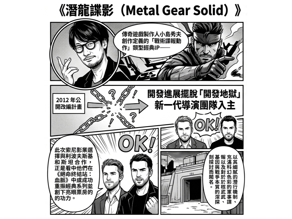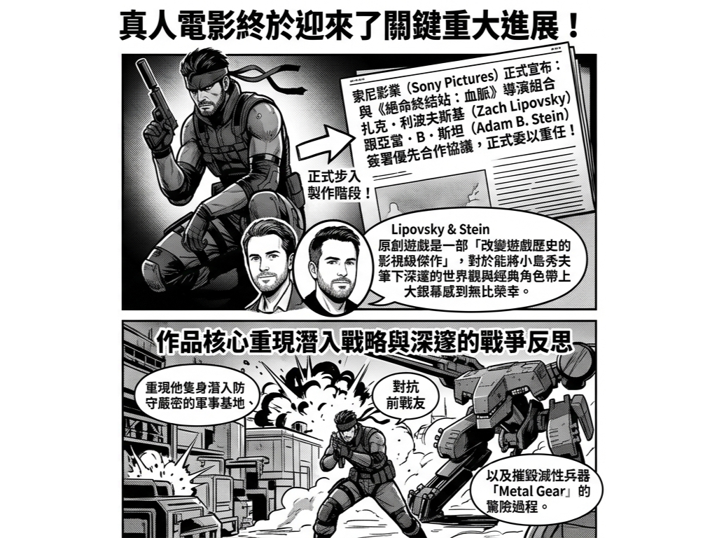 文/JO HSU 經過漫長等待和多次計畫更迭,傳奇遊戲製作人小島秀夫創作定義的「戰術諜報動作」類型經典IP—《潛龍諜影(Metal Gear Solid)》,真人電影終於迎來了關鍵重大進展。索尼影業(Sony Pictures)正式宣布,與執導 2025 年話題新作《絕命終結站:血脈》導演組合扎克·利波夫斯基(Zach Lipovsky)跟亞當·B·斯坦(Adam B. Stein)簽署優先合作協議,正式委以重任帶領這部影史與遊戲界期盼已久的巨作,正式步入製作階段。 開發進展擺脫「開發地獄」 新一代導演團隊入主自 2012 年公開改編計畫以來,《潛龍諜影》電影版曾歷經多次人事異動。此次索尼影業選擇與利波夫斯基和斯坦合作,正是看中他們在《絕命終結站:血脈》中成功重振經典系列並創下亮眼票房的功力。兩人表示,原創遊戲是一部「改變遊戲歷史的影視級傑作」,對於能將小島秀夫筆下深邃的世界觀與經典角色帶上大銀幕感到無比榮幸。 作品核心重現潛入戰略與深邃的戰爭反思《潛龍諜影》系列以其細膩的潛行機制、充滿科幻色彩的軍事諜報以及對於核武、基因與戰爭本質的深刻探討而聞名。電影版預計將圍繞靈魂人物「索利德·史內克」(Solid Snake)展開,重現他隻身潛入防守嚴密的軍事基地、對抗前戰友以及摧毀毀滅性兵器「Metal Gear」的驚險過程。 堅實幕後陣容與演員動向除了備受矚目的導演人選,本作將由影壇教父級製片阿維·阿拉德(Avi Arad)與阿里·阿拉德(Ari Arad)父子檔擔綱製作。雖然具體演員名單尚未最終確認,但此前曾傳出奧斯卡·伊薩克(Oscar Isaac)極可能飾演史內克,而小島秀夫本人對於選角的建議也一直是粉絲關注的焦點。 粉絲期待 遊戲與電影的完美融合作為全球最受歡迎的遊戲系列之一,《潛龍諜影》電影版的重啟無疑是 2026 年影視界的頭等大事。索尼影業表示,專注忠於原作精神的基礎上,透過好萊塢頂尖視覺技術打造一場前所未有的「靜默生存」視覺盛宴。 作品資訊 電影名稱:Metal Gear Solid(潛龍諜影) 發行公司:索尼影業(Sony Pictures)/ 哥倫比亞影業(Columbia Pictures) 導演:Zach Lipovsky, Adam B. Stein 製片:Avi Arad, Ari Arad 製作進度:正式製作進行中 Please enable JavaScript to view the comments powered by Disqus.