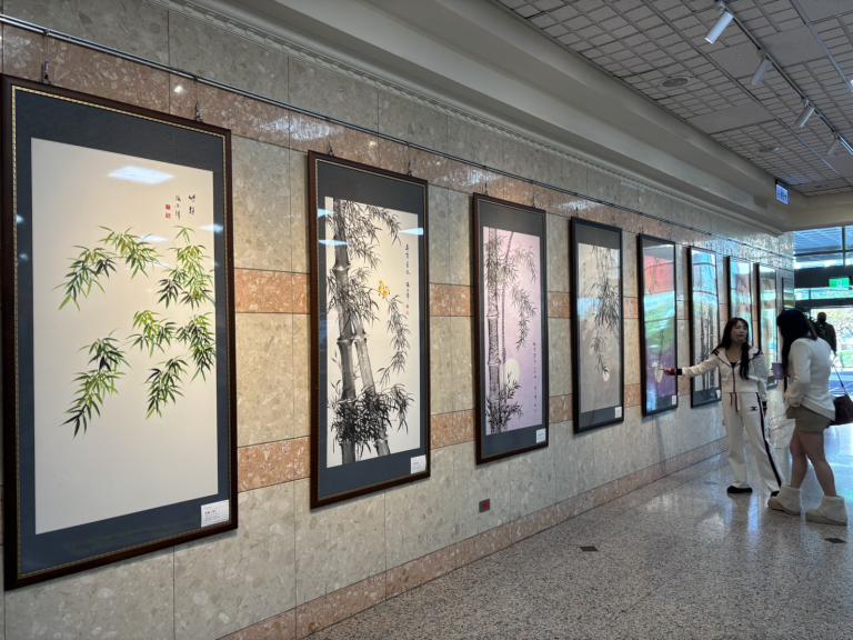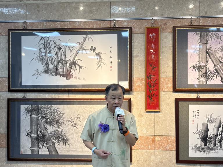 ▲書畫藝術家張上緯「竹意箏情」大地禮讚,高榮總院藝文暨農場特展。(圖/高婕)