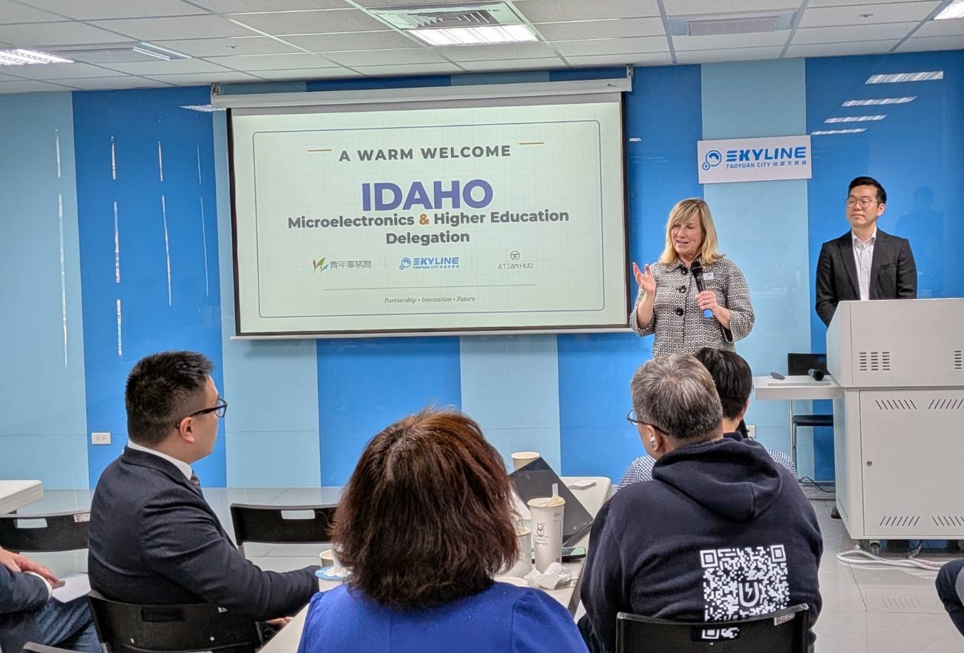 美國愛達荷訪問團昨(1/29)中午前往桃園國際青創基地-天際線,與桃園市青創、產學機構拜訪交流。此次訪問團以人才交流、新創合作為主軸,由愛達荷商務廳教育與高科技總監Tracy Day帶領,包含愛達荷州州立大學、西愛達荷州學院、愛達荷大學等五所院校院長與管理團隊,以及總部設置在該州之國際科技大廠美光(Micron)、愛達荷州製造業聯盟、愛達荷州科技委員會,前往桃園了解桃園對於人才海外發展、在地創業與國際對接、國際夥伴來桃園落地等相關議題。