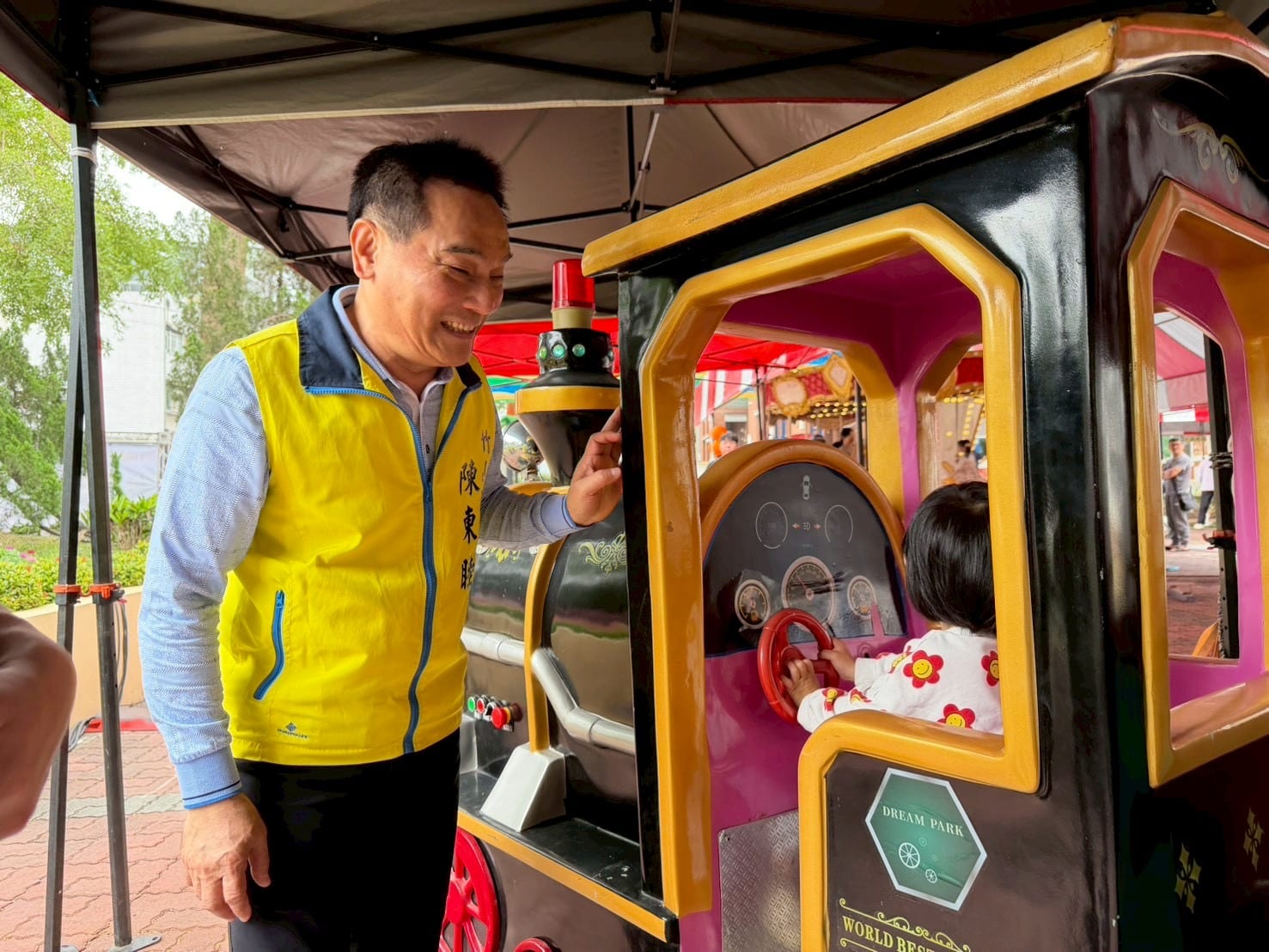 本次活動規劃多項深受孩童喜愛的遊樂設施,包括旋轉木馬、軌道小火車、彈珠檯及套圈圈等遊戲區,讓孩子們盡情體驗多元遊戲,宛如將主題樂園搬到家門口,現場歡笑聲不斷,孩子們玩得不亦樂乎。