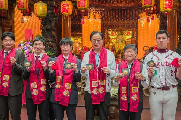 中壢仁海宮董事長王介禧指出,非常歡迎張市長與葛城崇執行長率領全隊來到仁海宮祈福,廟方特別準備了象徵「馬到成功」的福袋,內含平安符與金元寶,寓意包攬上、下半季冠軍及總冠軍的三冠榮譽,祝福樂天桃猿在新球季旗開得勝、再創佳績 。