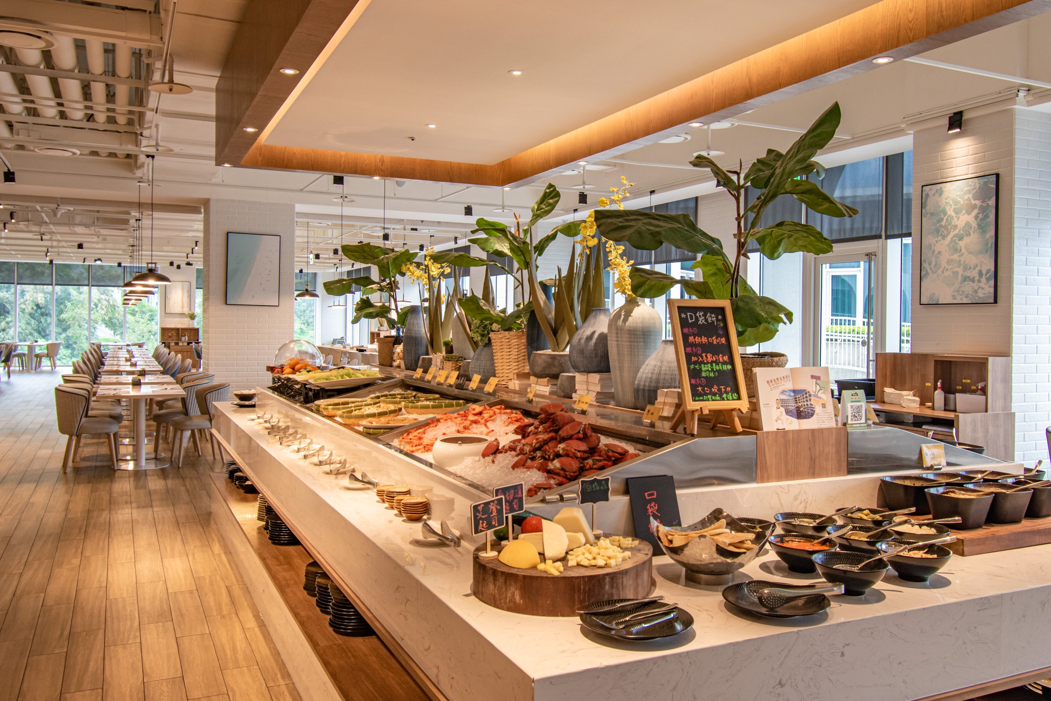 走進「河畔餐廳」,大片落地窗讓淡水河光灑進桌面,餐桌映著藍天與綠坡,光影流轉間是旅人與家人的笑語。主廚以星級手法結合在地漁獲,每尾鮮蝦現點現做,可選蒜蓉蒸蝦、避風塘蝦或西班牙白酒蒜香蝦三款風味。蝦殼被油香輕覆、蒜末與辣椒在鐵鍋間作響,空氣中滿是慶生的節奏感。這場生日宴,不只吃蝦,更是在河畔「品味一年更成熟的自己」。