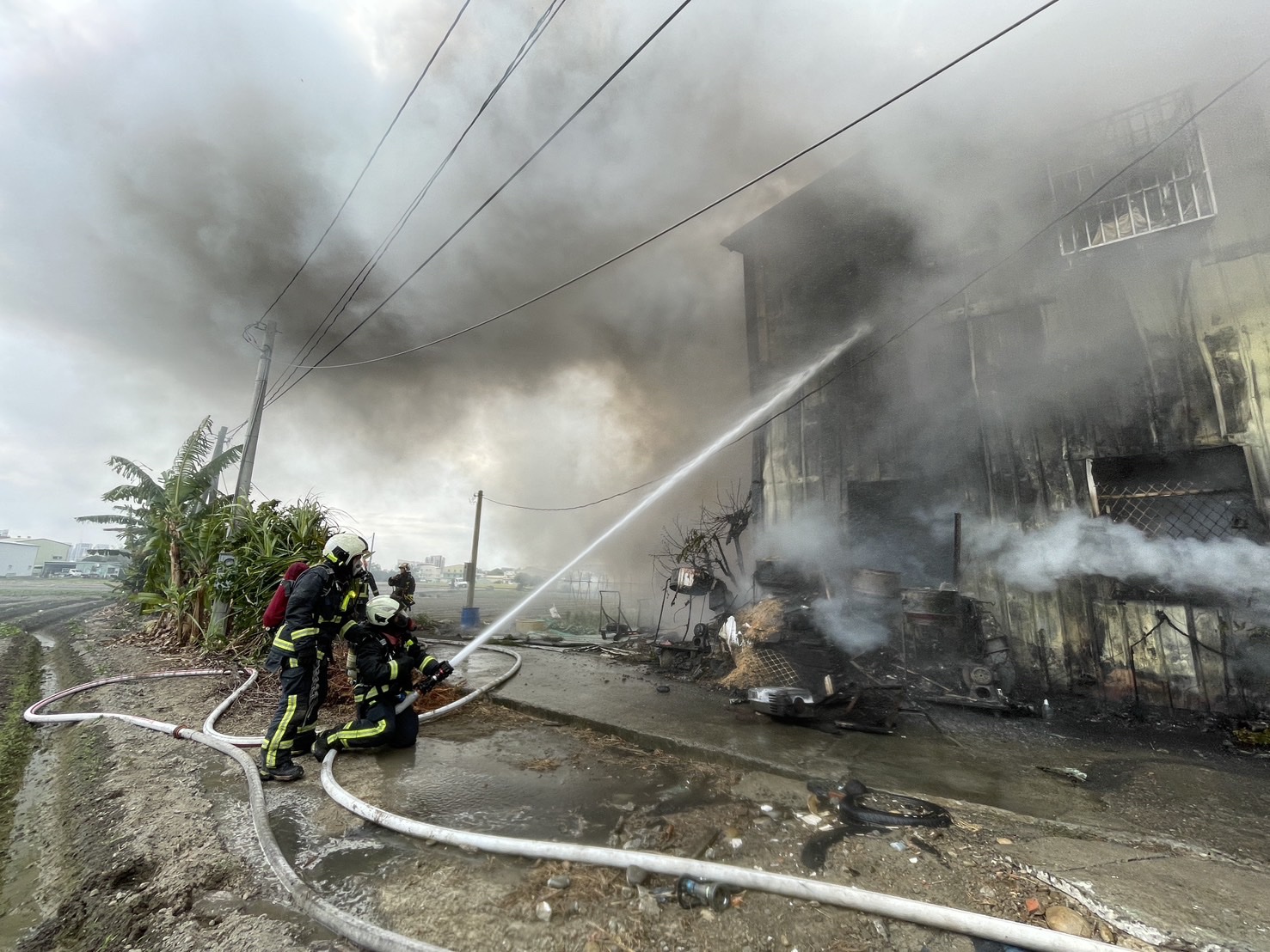 • 潭子鐵皮工廠火警濃煙沖天! 150平方公尺廠房木材成品半成品燒毀