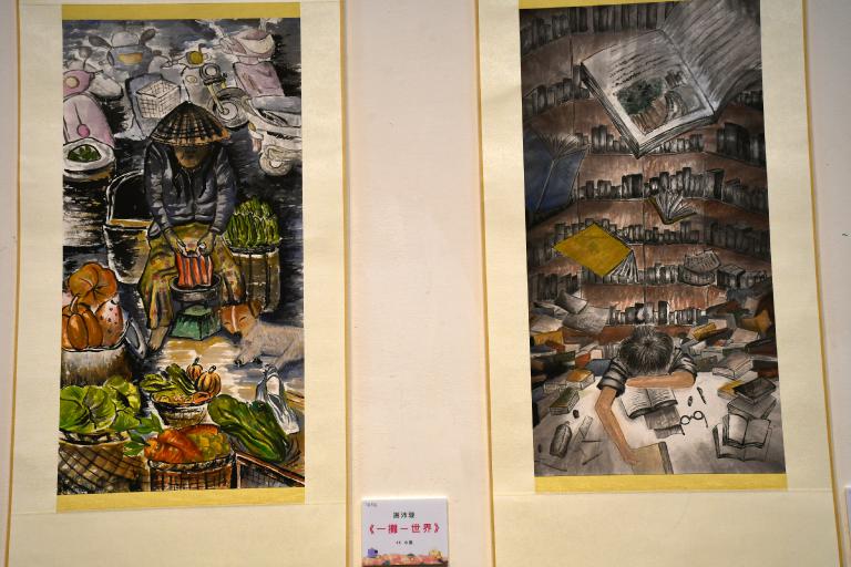 ▲這次展出作品從扎實的素描水彩、充滿靈動氣韻的水墨,到需要極大耐心的版印等,也讓大家看見學生們全面迸發的創作能量。(圖╱記者孔亮云攝)