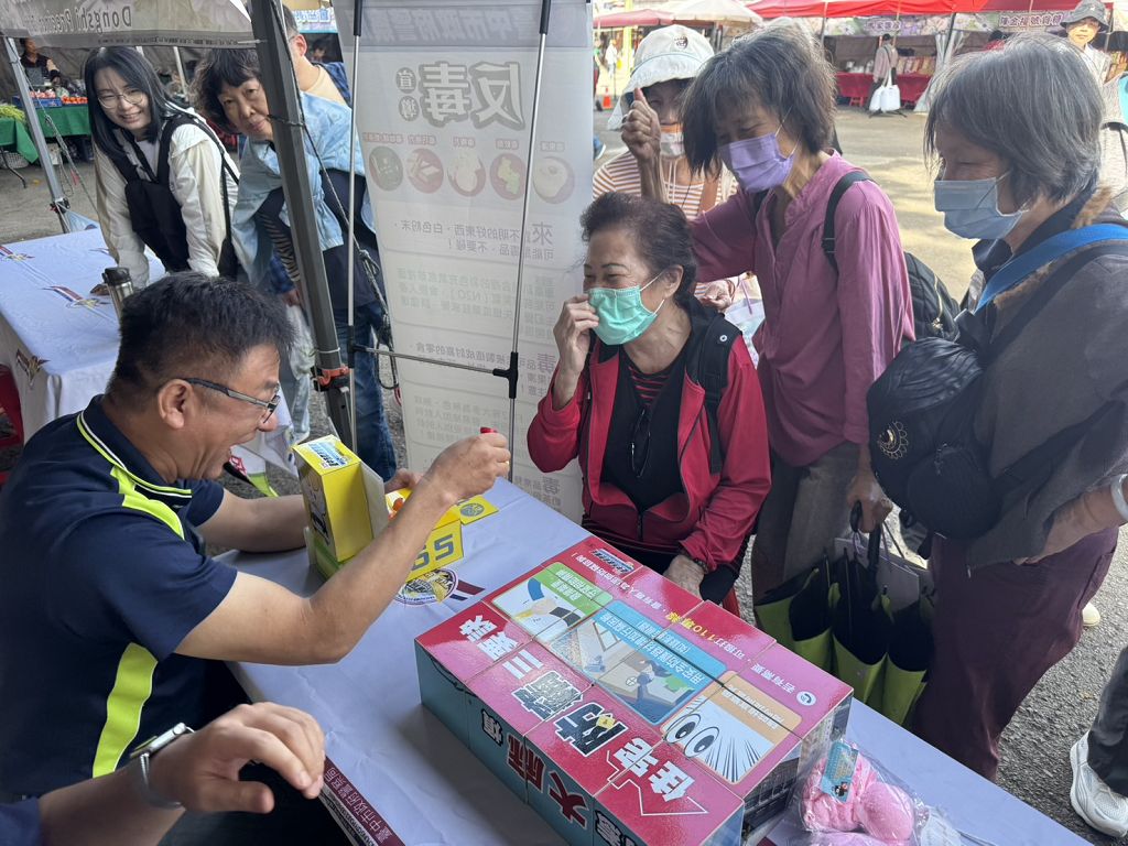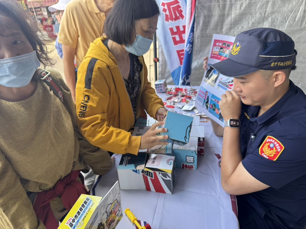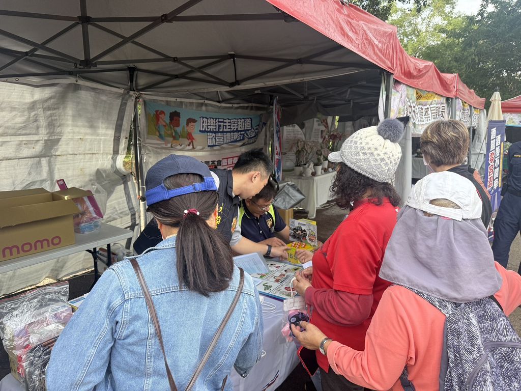 民眾在攤位前聆聽警方防詐、防毒與防竊宣導,提升自我保護意識。