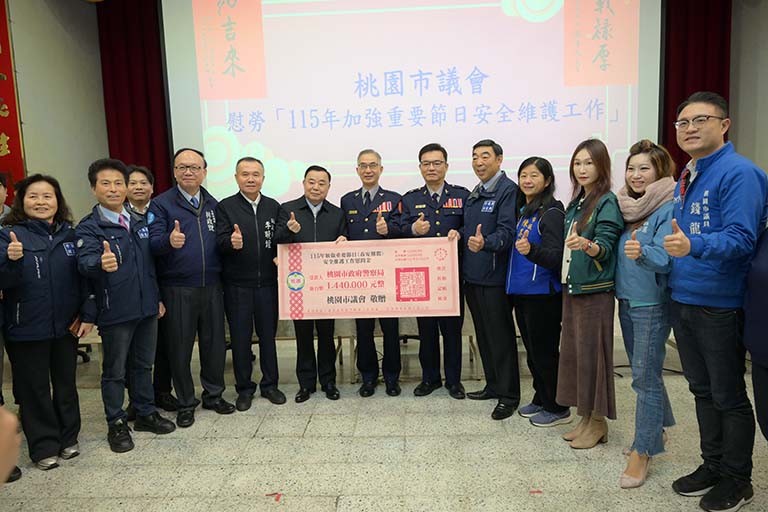 115年春節將至,桃園市議會為感謝警察、消防同仁於「加強重要節日安全維護工作」期間(春安期間2月9日至2月23日)堅守崗位、守護市民安全,議長邱奕勝率領多位議員,於22日上午前往桃園市政府警察局及消防局進行春節慰勞,並致贈警消人員慰勞金,總金額達新臺幣254萬元。