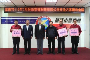 圖說:謝市長、警察局林局長及消防局黃技正與消防局好人好事暨特殊優良事蹟人員合照。 【民眾網編輯方笙楠基隆報導】基隆市115年2月份治安會報暨維護公共安全方案聯席會報,於2月26日15時召開,由市長謝國樑主持會議,會中頒獎表揚偵破重大刑案及好人好事優良事蹟之警、消同仁,並頒獎表揚基隆市永豐商業銀行基隆分行、中國信託商業銀行基隆分行、台北富邦商業銀行基隆分行等打詐基隆隊的優秀成員,分別於114年12月、115年1月攔阻詐騙金額新臺幣100萬元以上,協助防制詐欺犯罪,守護市民財產安全,期望今後能共同營造安全宜居的社區環境。 圖說:謝市長及警察局林局長與警察局破獲重大刑案治安有功人員合照。 基隆廟口夜市仁二、愛四路口部分攤商占用行人穿越線,影響行人通行與交通安全的情形,行人路權與交通安全是不可退讓的公共利益,但也理解攤商長期經營的辛勞與付出。已責成警察局、產業發展處、交通處及區公所,會同里長與夜市管委會實地會勘,全面掌握現況,研擬合規且兼顧各方權益的改善作法。在確保行人安全的前提下,兼顧夜市永續發展,打造安全、友善且具觀光魅力的廟口夜市。 圖說:謝市長及警察局林局長與警察局好人好事暨特殊優良事蹟人員合照。 另外,治安維護是一項嚴峻的長期工作,且民眾對治安有很高的期盼,做好治安工作,每一個環節都不能鬆懈,特要求各局處建立協調聯繫的機制平臺,共同為基隆市治安努力,確保市民的安全和福祉。 圖說:謝市長及警察局林局長與本市金融機構攔阻詐欺案維護治安有功人員合照。 圖說:謝市長及警察局林局長與本市金融機構攔阻詐欺案維護治安有功人員合照。