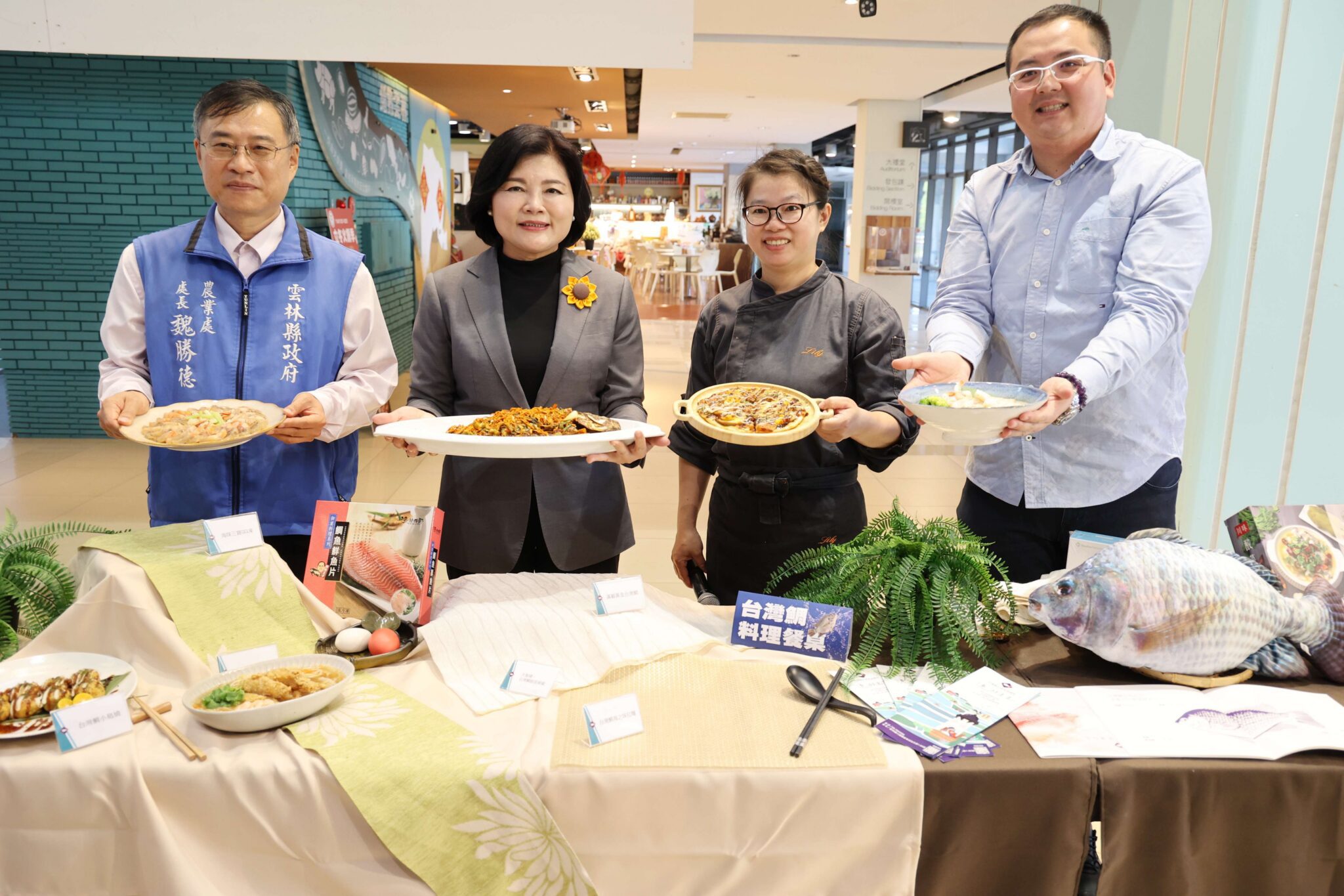 為重新喚起消費者對台灣鯛的信賴與熱愛,雲林縣政府今(8)日特別舉辦一場以台灣鯛為主角的美食饗宴,推出包括黃金生態魚、招牌鯛魚時蔬羹、鯛海之味拉麵、大阪鯛魚燒披薩、海味三寶QQ凍、鯛魚小島燒等六道創新料理,雲林縣長張麗善偕同縣府農業處長魏勝德、新聞處長陳其育、口湖漁類生產合作社特助王揮評以及雲林台灣鯛養殖戶共同宣傳台灣鯛多樣餐桌魅力,同時重申雲林縣政府對食安嚴格的守護,希望吸引全國消費大眾共同響應,見證食安與美味兼具的台灣鯛風潮。
