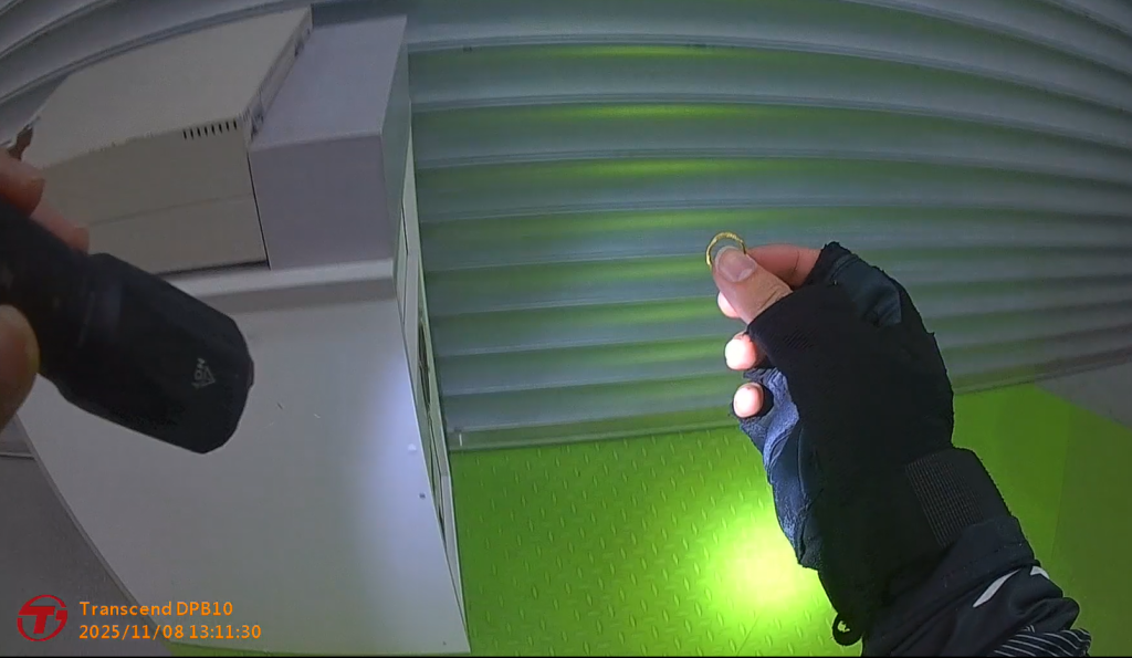 114年11月8日上午10時35分,楊女前往潭子郵局使用ATM存款,返校上課後赫然發現皮夾內的金戒指不見蹤影。她回想可能是在取款時不慎掉落,因人在校內無法立即返回,只好撥打電話向潭子分駐所報案,希望警方協助調閱監視器。值班警員劉采婷接獲報案後,立刻通知線上巡邏警力協助調閱影像,自己則利用勤區查察勤務時段,手持手電筒在郵局周邊展開逐一搜尋。