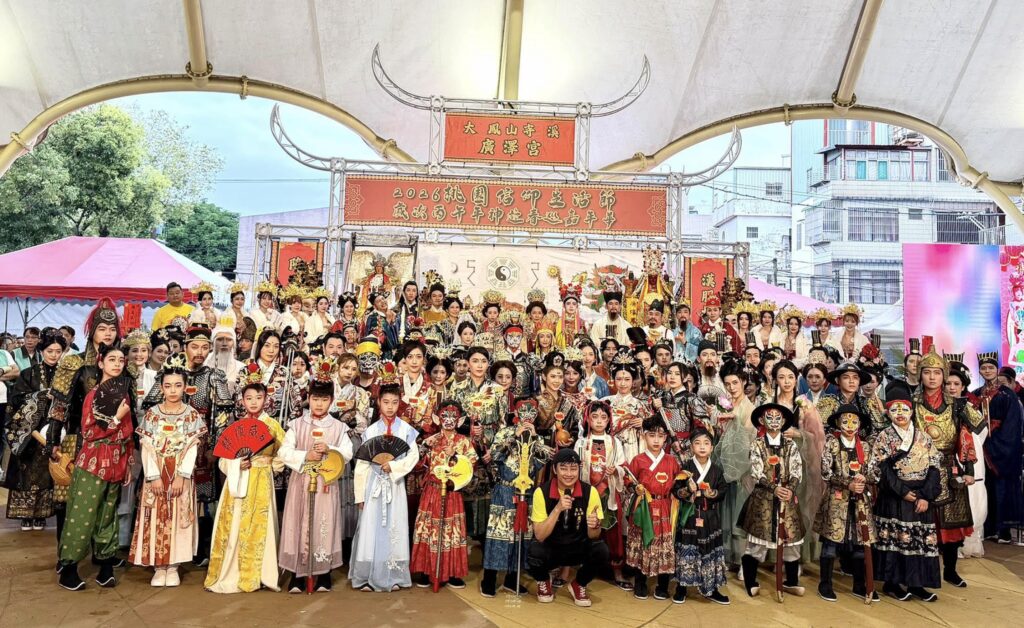 由「搖滾宮主」賴銘偉(Yuming)主導、桃園大溪鳳山寺廣澤宮舉辦的「2026桃園信仰生活節」-丙午年神遊春巡嘉年華,昨(4日)兒童節熱鬧登場,吸引破千人參與;其中最受矚目、邁入第4年的活動重頭戲「漢服真人扮仙」,今年有包括郎祖筠、亮哲、BL劇CP初孟軒及鍾岳軒、明星夫妻檔龍語申及何依霈、陳大天及劉璞、情侶檔楚翔及茵芙等102位演員、人氣KOL網紅及YouTuber身著漢服登場,特別吸睛,眾星都以神仙造型結合傳統藝陣踩街巡境,與沿途民眾感受眾神降凡賜福的實境體驗。