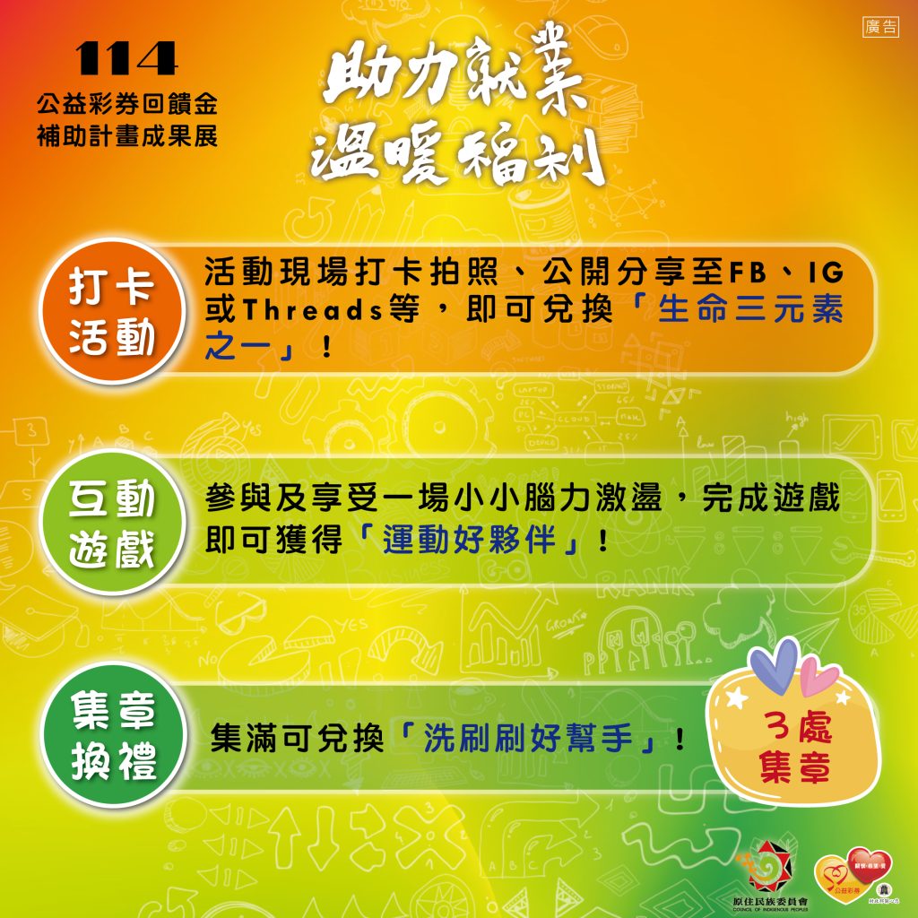 主辦機關歡迎民眾踴躍參與,親身體驗原民魅力,同時見證公益力量如何點亮部落、攜手共創溫暖共融的社會。