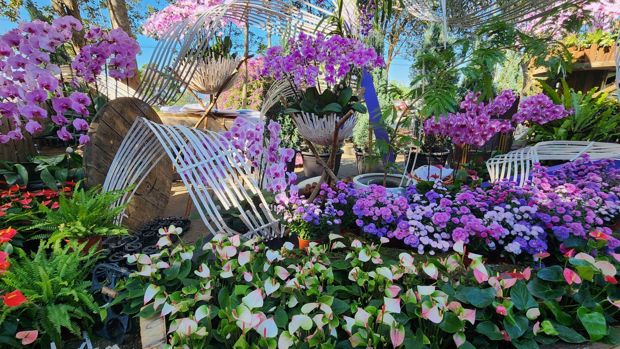 埔里花卉展活動,今年以「埔里花繪調色盤色號2025」為主題,活動以雙展區呈現埔里花卉產業特色風貌,第一展區位於籃城里「埔里花卉暨多功能農特產中心」(花卉物流中心),以大型花藝裝置藝術為主題,打造四大特色地景—埔里山景、農村風光、好水意象與蝴蝶之鄉,以埔里在地花農生產的盆花為素材,結合花藝老師創作與志工巧手,呈現出層層疊疊、色彩斑斕的花卉地景,展現花卉產業與自然景觀的融合美學,假日期間有闖關活動、在地產業市集與藝文表演等多活動。