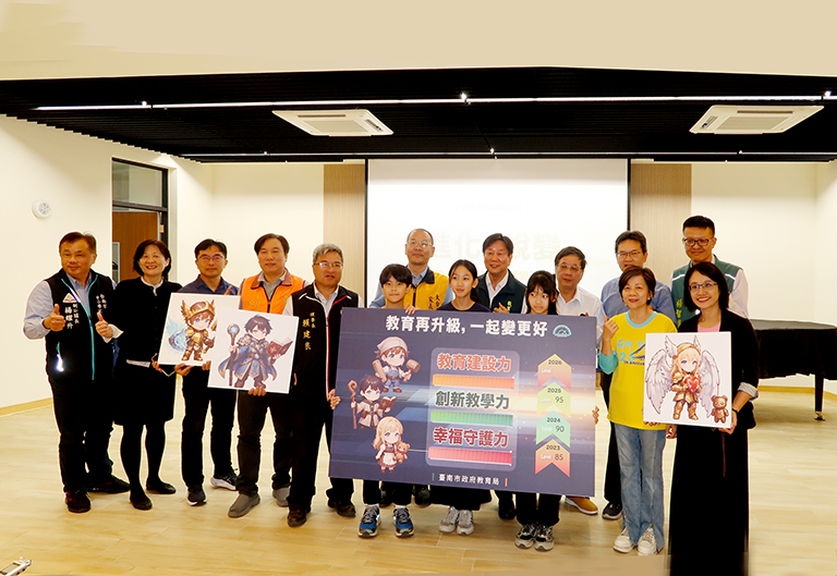 臺南市政府教育局今(9)日上午在蓮潭國中小舉行「進化.蛻變-教育再升級.一起變更好」2025年終成果發表會。今年為展現數位科技融入教育成果,發表會創新打造一場「劇場」般的沉浸式任務導覽。透過雙語學生司儀開場、具象化主題影片,教育局長鄭新輝專題簡報及「三力升級儀式」,帶領與會嘉賓實際走入教育現場,親身體驗「教育建設力、創新教學力、幸福守護力」三大關鍵力量如何推動臺南教育全面升級。