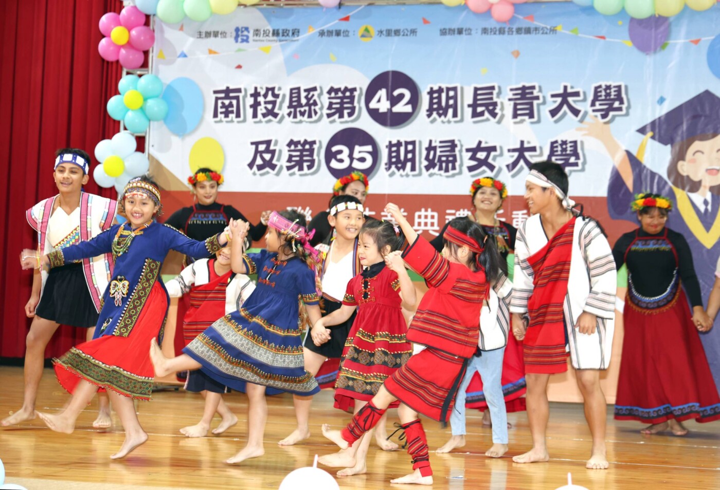 活到老學到老!南投縣第42期長青大學與第35期婦女大學結業典禮,11日上午於國立水里商工熱鬧登場,來自全縣13鄉鎮市共600位學員代表齊聚,透過成果展演展現樂齡學習活力,也象徵南投在性別平權與高齡友善政策上的持續推進。
