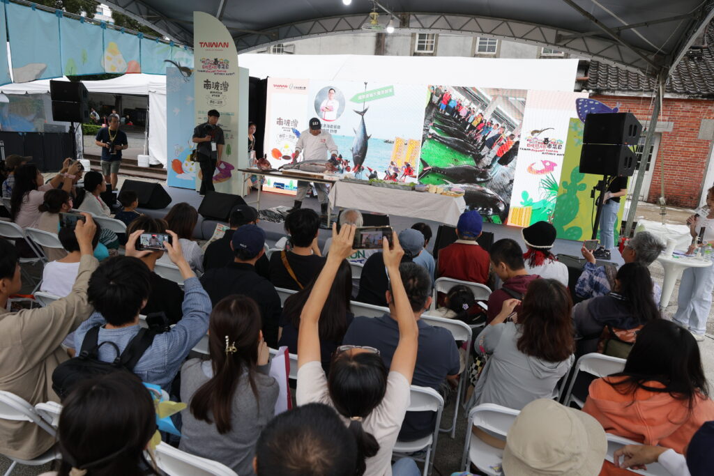 圖說: 南波灣市集東港鮪魚刺身秀,100多公斤鮪魚讓台下民眾驚呼連連