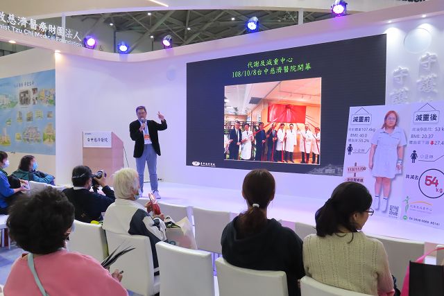 【台灣電報記者 玉女/ 台中報導】 現代人生活型態轉變,肥胖問題日益嚴重,常伴隨糖尿病、高血壓、高血脂等慢性疾病,使病人困擾。台中慈濟醫院代謝及減重中心主任李旻憲,七日下午在台灣醫療科技展,以兩個臨床個案說明病態肥胖的樣態與「減重手術後之照護」。李旻憲指出,當病人遭遇飲食、運動或藥物難以控制體重和代謝問題,考慮採用「微創減重及代謝手術」時,仍應與醫療團隊確認從手術、護理、營養等方面的完整方案,才能確保扭轉病態肥胖,重拾健康人生。 李旻憲主任分享的一位女病人,曾因嚴重肥胖併發呼吸衰竭、脂肪肝、糖尿病,多重共病讓他嘗試包括運動、減肥藥等多種減重方法,都不能奏效。最終採行外科手術方法,透過醫療團隊全方位協助與照護,終於在術後半年減重50公斤。另一位患有心臟衰竭及糖尿病的男病人,體重高達135公斤,身體質量指數(BMI)達到46。最讓家人擔心的是病人左心室每次收縮射出的血液量僅有34.7%,已達心臟衰竭程度,成為被醫師建議考慮換心的高風險個案。透過醫療團隊各方面評估,病人決定接受胃縮小手術,醫療團隊也詳列全方位照護方案,術後五個月後終於減重49公斤,高血糖及高血壓均緩解。術後一年左心室每次收縮射出的血液量回升至62.8%的正常範圍,解除換心危機,讓家屬感到不可思議。 李旻憲強調,所有個案不是手術就一勞永逸,都需要建立堅實的跨專業團隊,包括護理師、營養師和個案管理師,從術前評估到術後持續追蹤,提供整合式、以病人為中心的個別化服務,並要長時間陪伴,才能確保每一位「重量級」病人得到安全與最好照顧。台中慈濟醫院2019年成立代謝及減重中心,已獲臺灣代謝及減重外科醫學會卓越中心和SNQ國家品質標章雙重認證,至2025年已累積近3000例成功案例,維持千分之一極低的併發症、死亡率為零。 李旻憲認為,改善肥胖不是意志力問題,而是需要專業介入的慢性疾病。他建議三類人應積極與醫師諮詢代謝問題:一為體重除以身高平方(kg/m2)也就是身體質量指數BMI大於37.5;二是BMI達32.5並伴隨糖尿病、高血壓、睡眠呼吸中止症等肥胖併發症;三為BMI大於27並伴隨糖尿病的人。李主任強調,飲食熱量控制和規律運動能降低肥胖發生,當發生病態肥胖時,就可以諮詢醫師是否採行微創減重及代謝手術的方法,以改善並治療肥胖相關慢性疾病。 李旻憲主任在台灣醫療科技展演講「減重手術後之照護」,說明兩個臨床減重案例。 李旻憲透過簡報介紹胃繞道手術。 李旻憲簡介台中慈濟醫院代謝及減重中心。 大眾閱覽代謝及減重中心醫療資訊看板。
