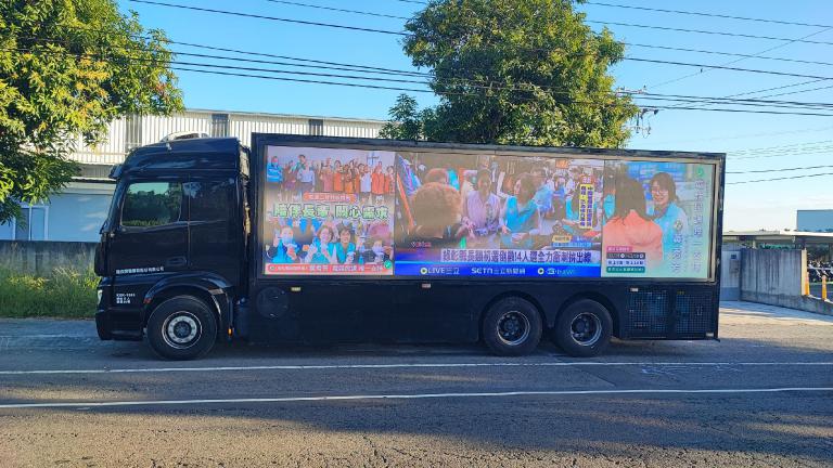 ▲黃秀芳忙初選不忘做公益,有支持者也出動「子瑜版」宣傳大貨卡力挺。(圖╱記者孔亮云翻攝)