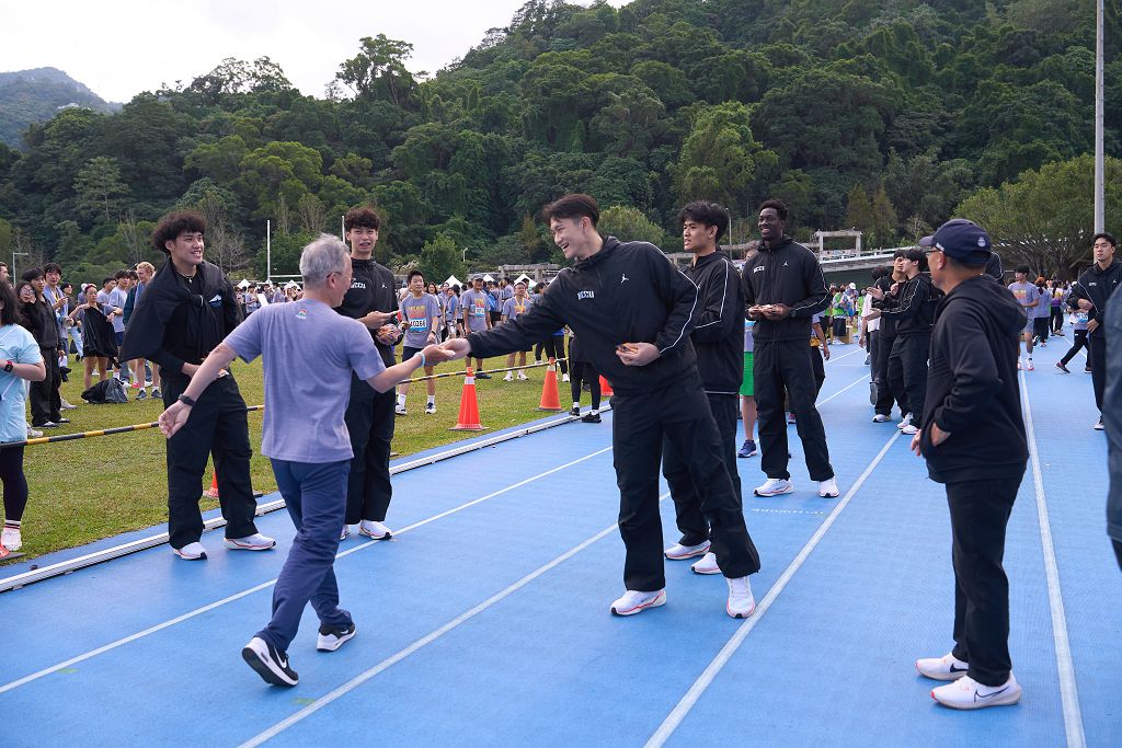終點線的另一幕則成為本屆賽事的溫暖象徵。雄鷹球員列隊為每位跑者掛上完賽獎牌,無論年齡或組別,都能在揮汗後迎接難忘的鼓勵與成就感。有跑者分享,能從喜愛的球員手中收到獎牌,「不只是完賽,而是一份難忘的情緒價值」。而政大 EMA 碩專班今年再度以 120 位成員成為最大參賽團體,不僅展現學院凝聚力,也在今年協助三位視障跑者完成報名,陪跑員全程相伴,讓共融情誼成為比賽中最動人的風景。校長李蔡彥也親自參賽,他表示透過訓練能讓自己的狀態保持良好,也希望鼓勵更多校內外人士一同加入運動行列。