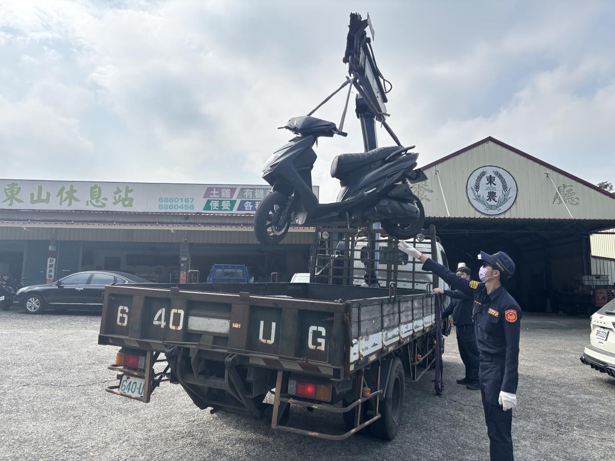 秋末冬初,白河東山地區市174及175公路沿線黃橙橙的柳丁柑橘結實纍纍,暖呼呼的關子嶺泥湯,香火鼎盛的宮廟古蹟,吸引各地遊客觀光車潮!臺南市政府警察局白河分局考量山區道路坡度起伏且連續彎道多,為提升駕駛人專注力及自我管理車速、持續守護山道行車安全,同時防範改裝噪音車擾寧,於昨(13)日上午偕同交通大隊、環保局、新營監理站,於市道174線橫路休息站旁執行聯合稽查。