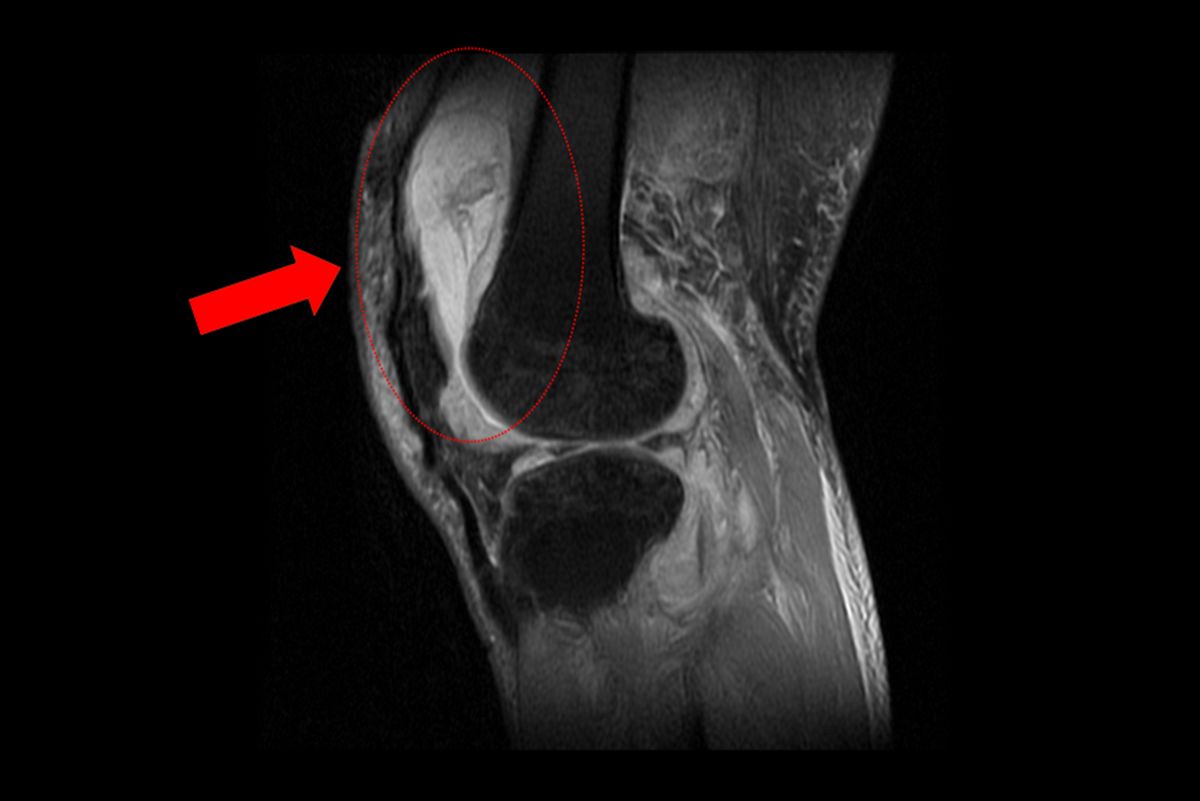 賴先生長期左膝腫痛、幾乎無法行走,就診時表示以為只是退化性關節炎,服用止痛藥、抽關節積水、熱敷復健數月卻越來越嚴重,來院時膝蓋已腫脹無法彎曲。關節中心主任周立展抽取膝關節液化驗後發現,白血球數值雖偏高,但並非典型的細菌感染,懷疑有其他原因。周主任安排病人住院,進一步X光與磁振造影檢查,顯示膝蓋內已有大量積液並化膿,屬於嚴重關節感染。