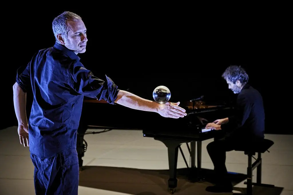 法國科技藝術家雅德里安.孟朵與音樂家Babx合作的《Piano piano》,以鋼琴演奏結合法式香頌、爵士與即興音樂,搭配即時互動投影與水晶球雜技,呈現詩意而夢幻的法式浪漫。戲劇方面,西班牙出奇偶劇團《點擊得永生》以黑色幽默反思科技升級肉身的慾望;比利時靜物劇團《這就是人「森」啊!》則在荒謬的露營情境中描繪末日來臨的人性百態。