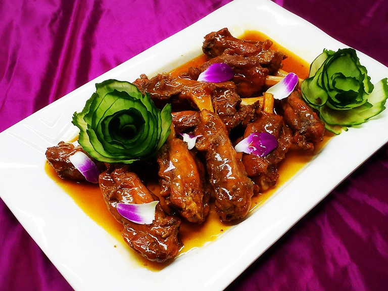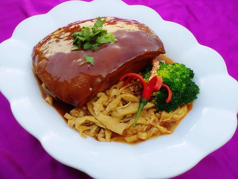 料理選用在地國產豬肉與農特產做為食材,請總舖師搭配出美味豬肉料理,共有諸事鴻圖五福臨、書閣鸞鳳煨魚翅、蒜味白肉海草蝦、港式奇珍龍虎班、培根粽情八寶飯、山中嫩筍轟層肉、田園窯烤龍鳳腿、霜醬德國脆魯足、罈香豬崽一窩樂、尊爵席悅仙草凍等10道菜色。每桌優惠價4,000元、限量40桌,額滿為止。